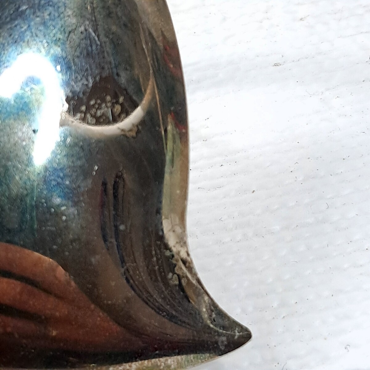 Set of 6 rings. Nice large size. I think these are supposed to be silver, but they have a patina to them that makes them appear a brassy color at the moment. Wear/marks/scratches/scuffs as shown. See pics.