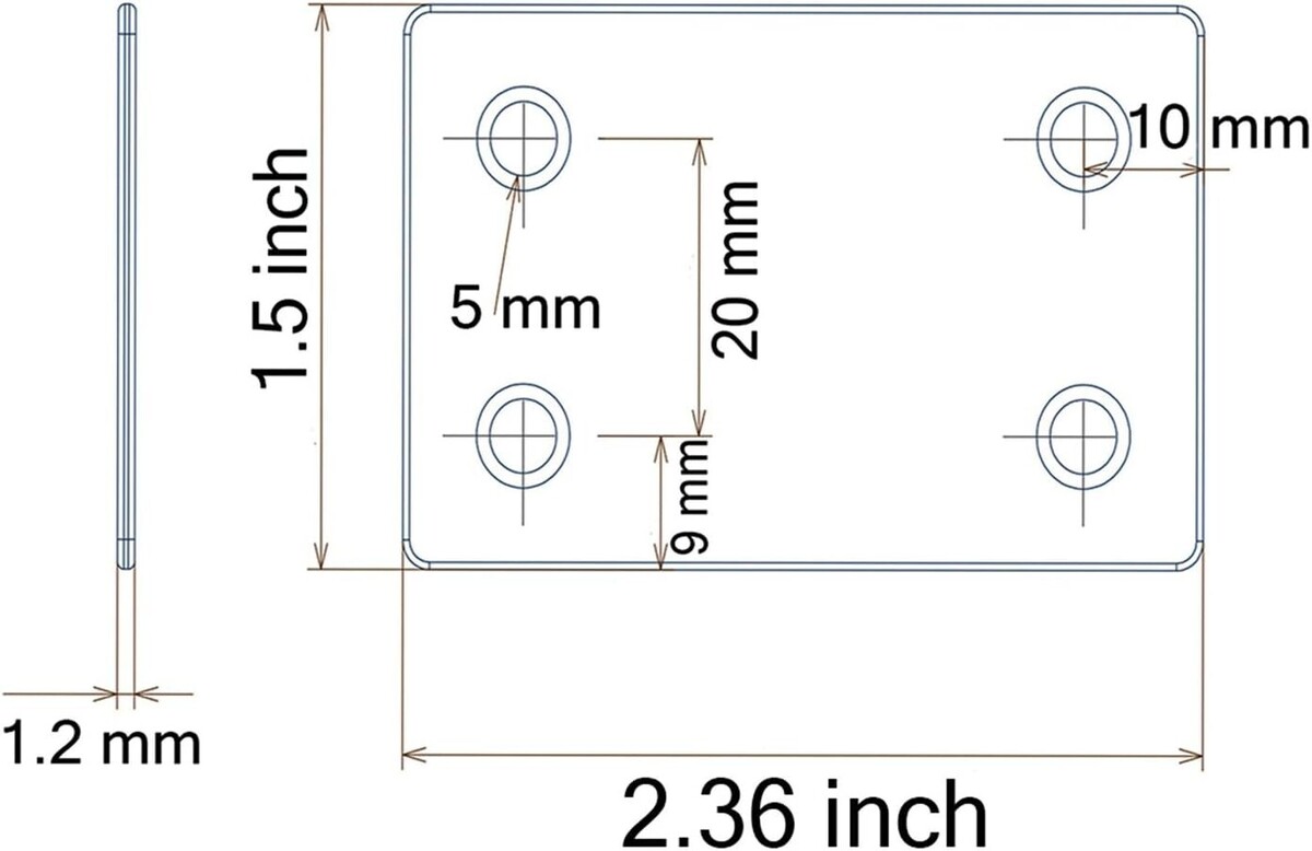 Bracket Size: 38 x 60 mm (1.5 x 2.4 inch), Thickness: 1.5 mm.