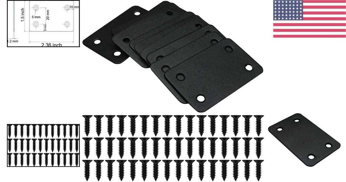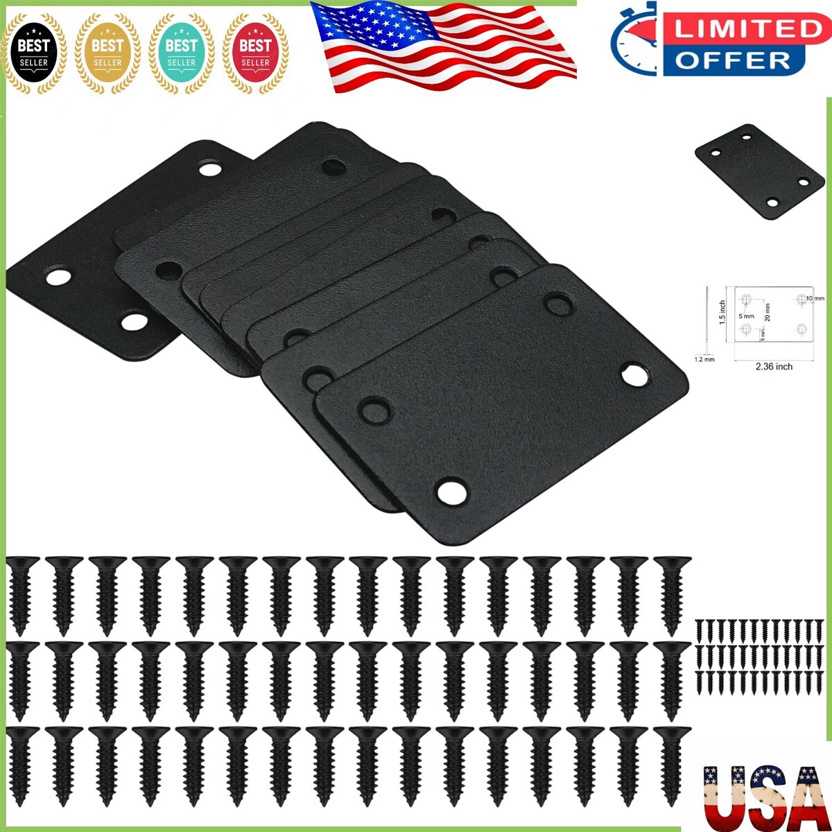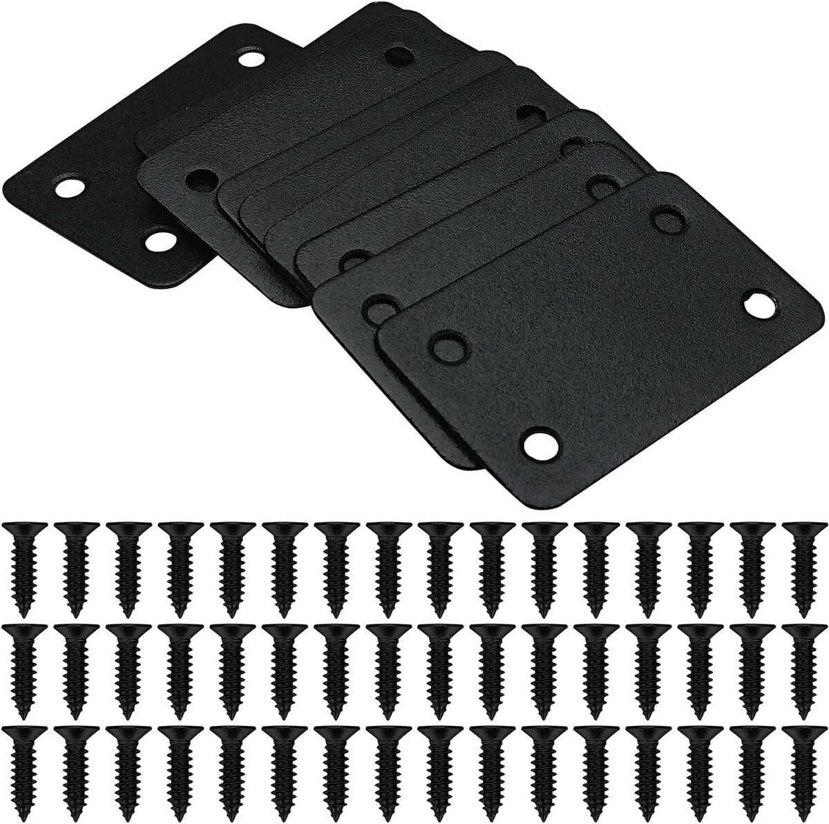 Set of 12 Black Metal Flat Brace Brackets for Furniture and Cabinet Repair