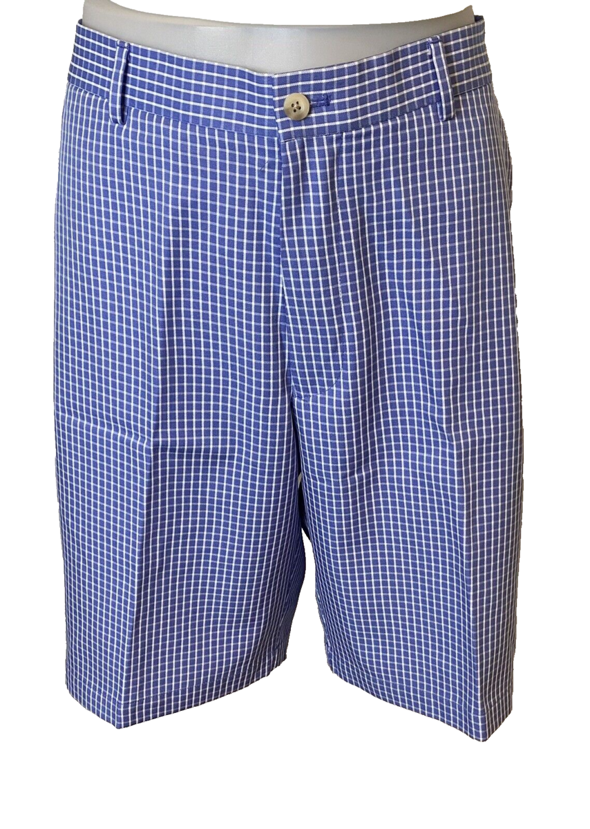 Peter Millar Blue and White Checked Flat Front Shorts Size 36