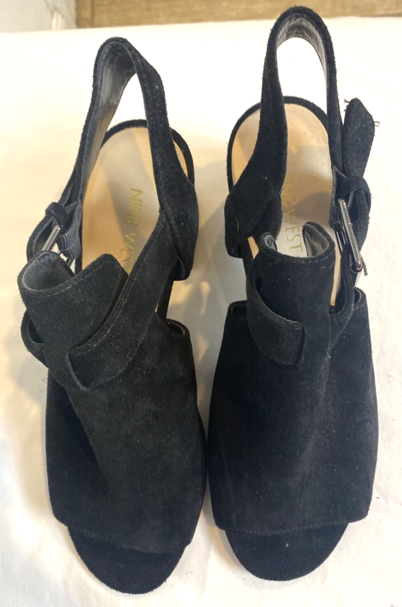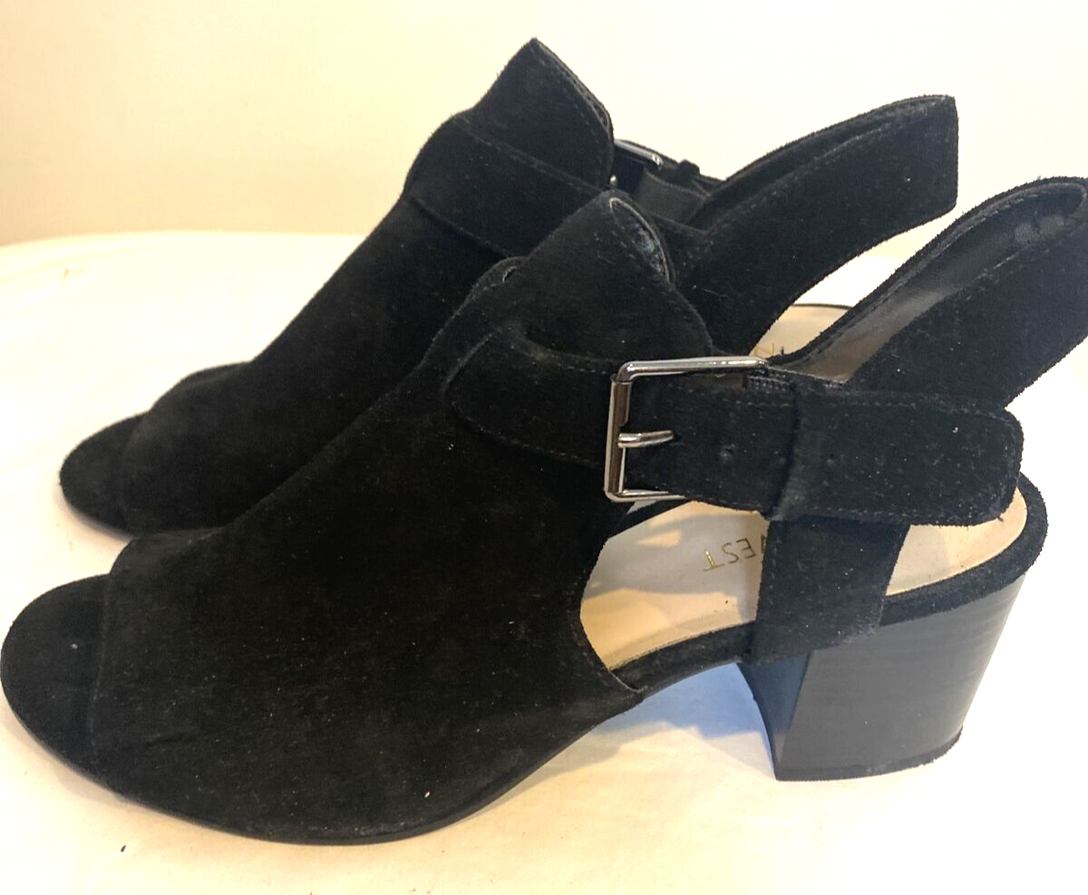 Nine West Ganci Black Suede Block Heel Sandal Size 7 M