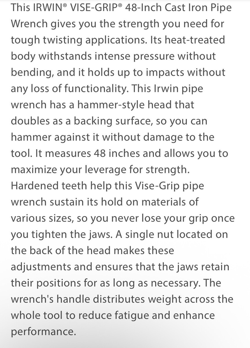 Irwin Vise Grip 274108 48-inch HD Cast Iron and 28 similar items