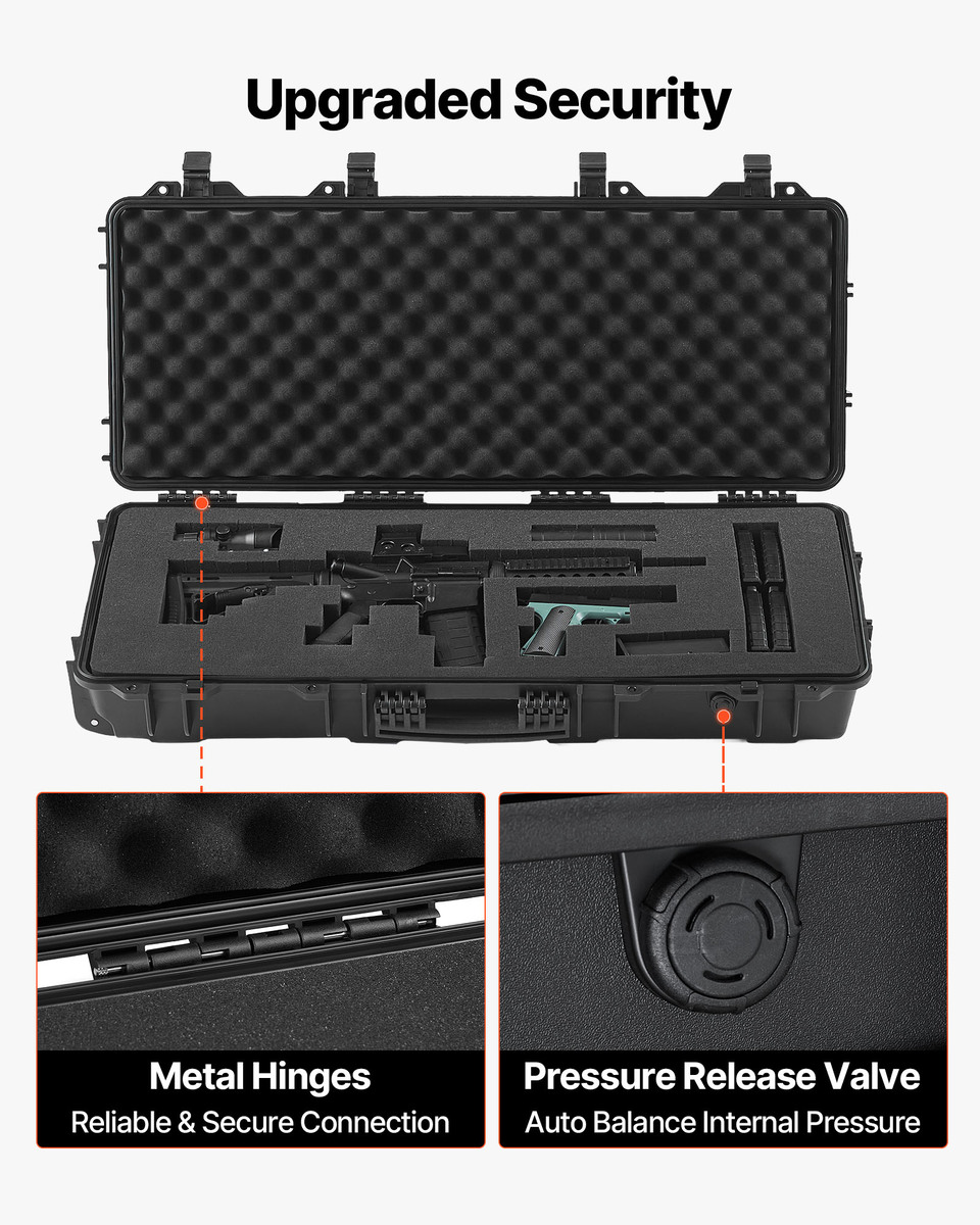 4-Layer Foam: Our gun case features 4 layers of soft foam:1 layer of egg-crate foam for shock absorption; 2 layers of pre-cut foam for a snug fit; 1 layer of solid foam for extra support. You can customize compartments tailored to the shapes of your rifle