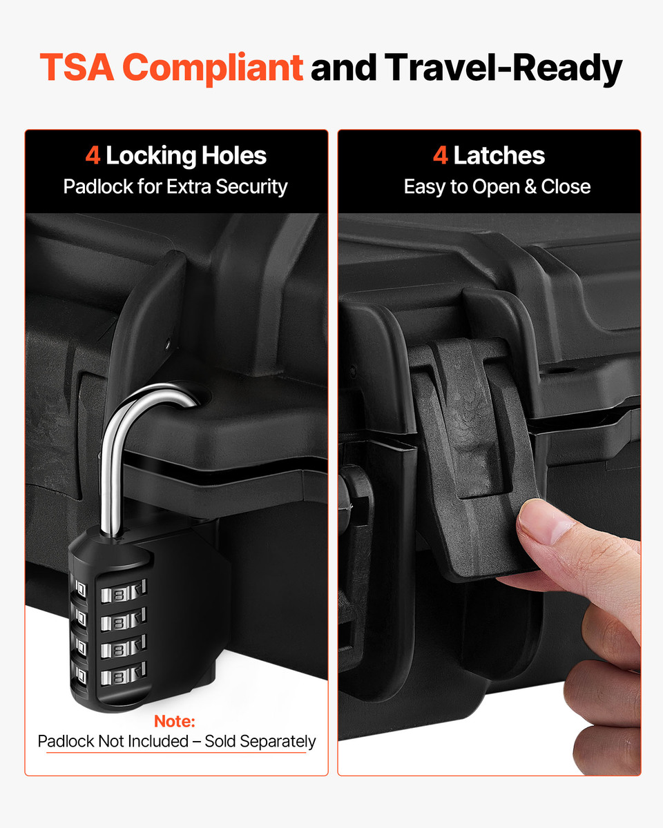 TSA Compliant: Meet TSA standards, this rifle case is suitable for travel on airplanes, trains, and other transport. Equipped with multiple latches, you can also add padlocks to the built-in lock holes for extra security (Note: padlocks not included)