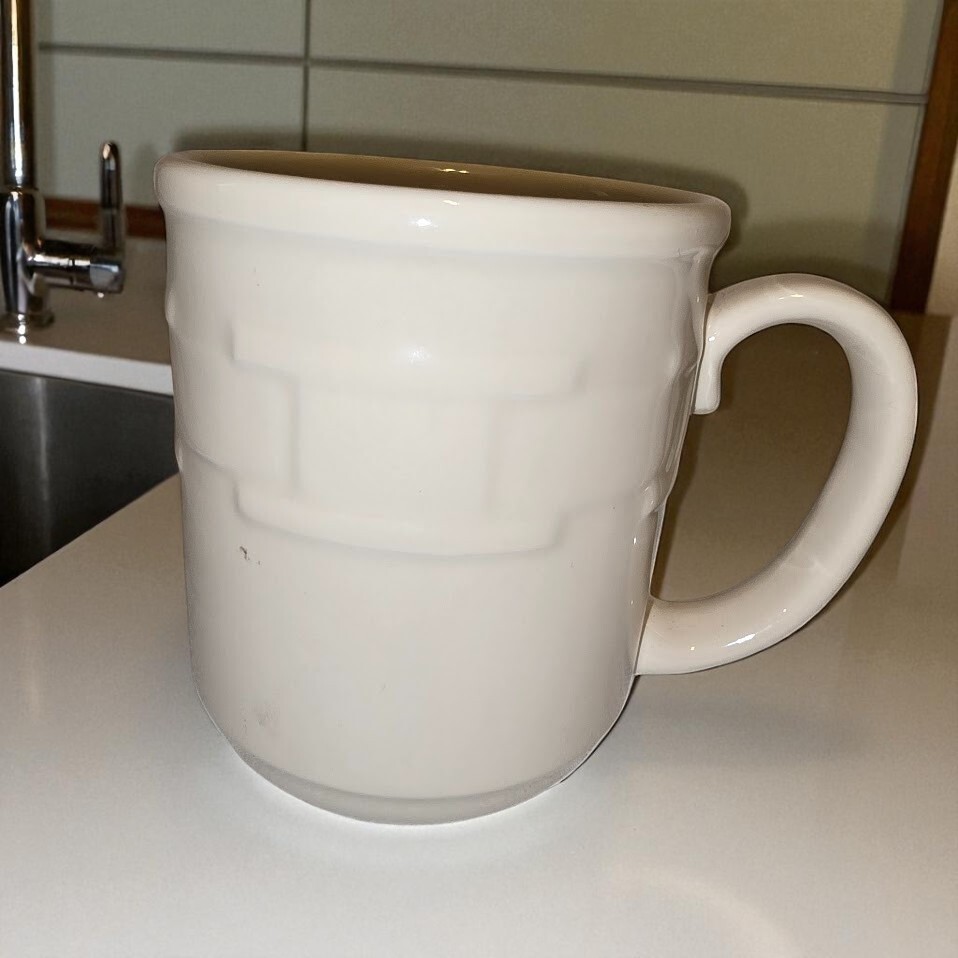 Longaberger Pottery Coffee Tea Mug Cup Ivory Cream White Woven Traditions USA 4"