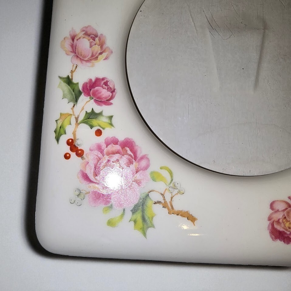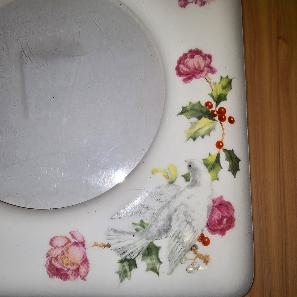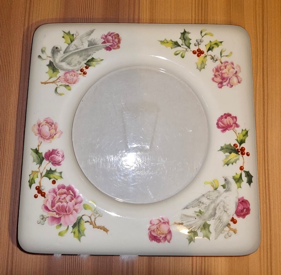 ? Vintage porcelain standing photo frame with dove floral and holly motif