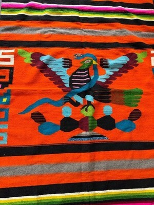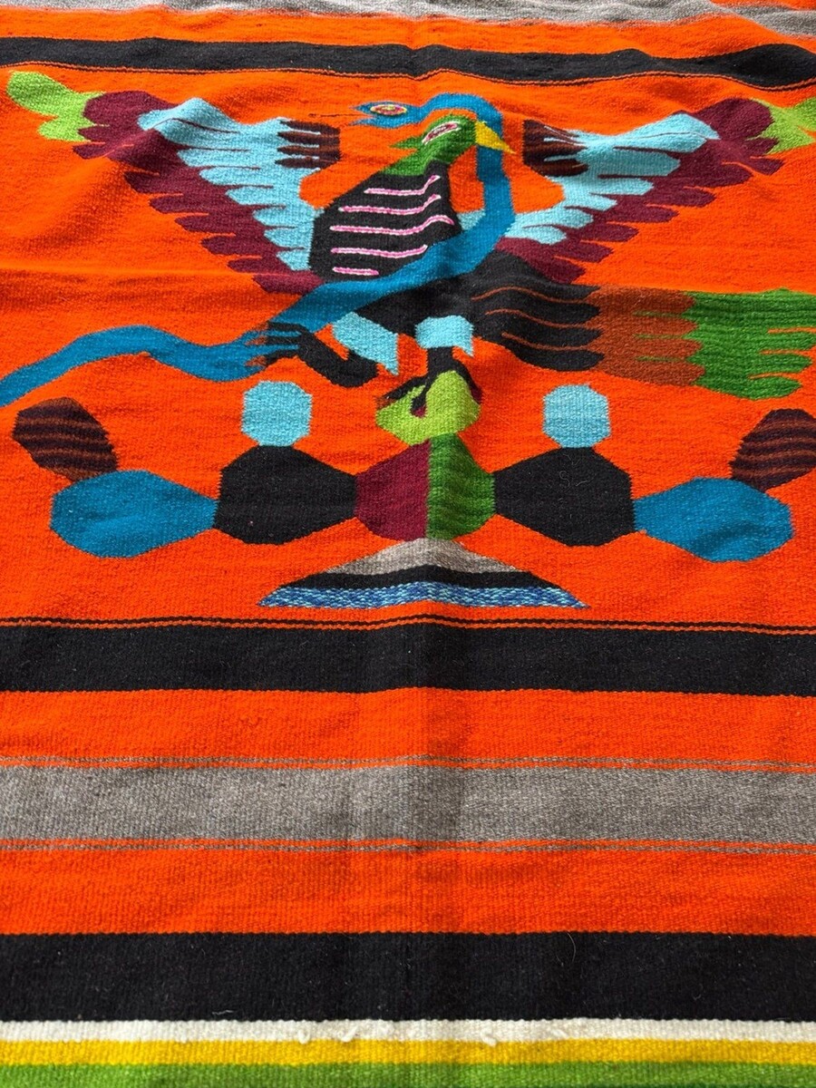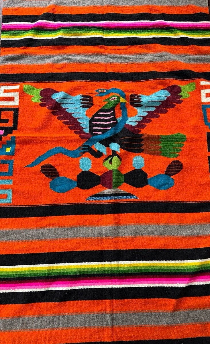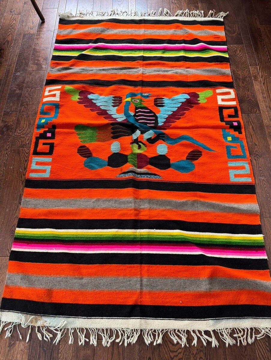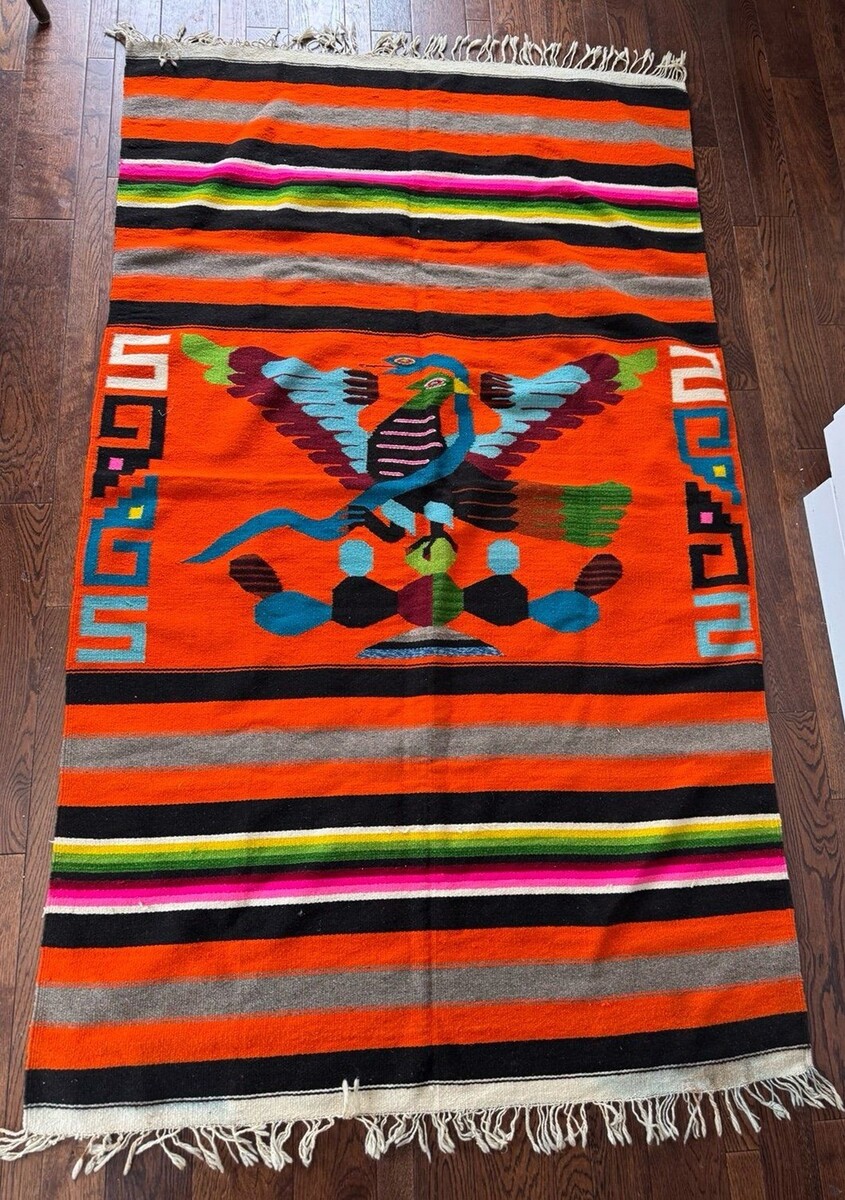 Vintage Mexican Latin American Aztec Mayan Blanket Wool Kilim Rug 4'3 x 6'6