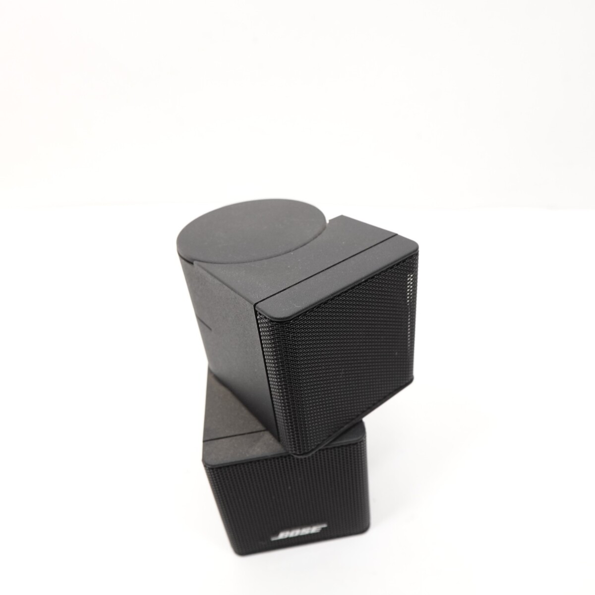 Original Bose double cube surround speaker in black. Compact swivel design, perfect as a replacement or add-on speaker for compatible Bose systems such as Acoustimass, Lifestyle, or CineMate setups.