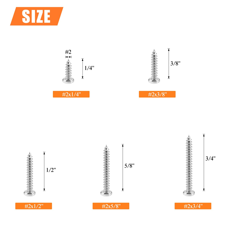 - Size: #2 x 1/4" 3/8" 1/2" 5/8" 3/4"