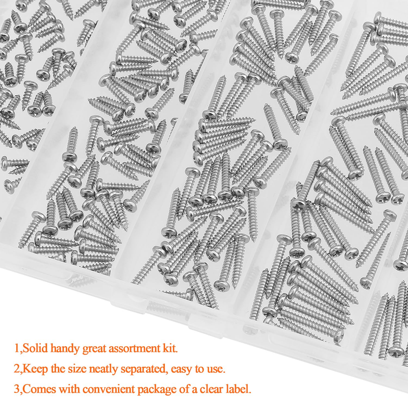 250-Piece Assorted Phillips Pan Head Wood Screws Set, 304 Stainless Steel