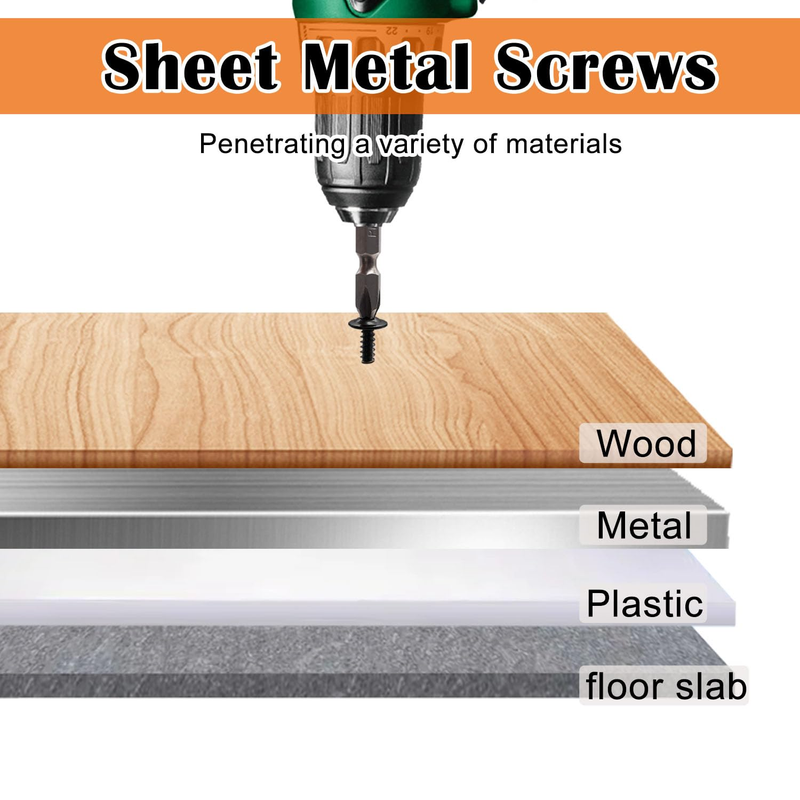 Package includes: This package contains 200 sheet metal screws neatly organized in a box for easy storage and transport. Additionally, an extra screwdriver bit tool is included for added convenience, ensuring that you have everything you need to get started on your projects.