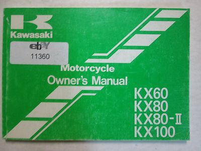 1999 Kawasaki KX60 KX80 KX80-II KX100 MOTORCYCLE Owner's Manual If you have further questions feel free to message us or call us at We will leave POSITIVE Feedback after we receive your payment. Please do not forget to give us POSITIVE Feedback and FIVE Stars on all of the Detailed Seller Ratings! If you are not satisfied with your shopping Experience, please contact us to get a solution before you decide to leave a NEUTRAL or a NEGATIVE Feedback, We will do our best to solve any problems for you as soon as possible. We will provide you with the BEST POSSIBLE service because the POSITIVE Feedback and FIVE Stars are what we are striving for. Please email me through "My Messages" or "Ask Seller Questions" if you have any question about our listings or your purchase. Please give us a Five
