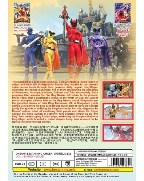 Two millennia ago on the planet Chikyu, a group of heroes joined forces to defeat and exile the Underground Empire Bug Naraku to the planet's subterranean levels through their guardian deity Legend King-Ohger. Afterward, the heroes disbanded, five of them establishing the kingdoms of Shugodom, Nkosopa, Ishabana, Gokkan, and Tofu, respectively. But a prophecy later spreads that the Bug Naraku will return.