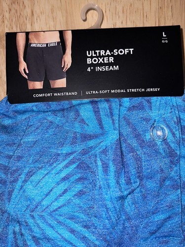 LARGE AMERICAN EAGLE ULTRA SOFT LEAF PRINT BLUE BOXER BNWTS
