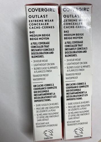 2X Covergirl Outlast Extreme Wear Concealer 842 Medium Beige Full Coverage.