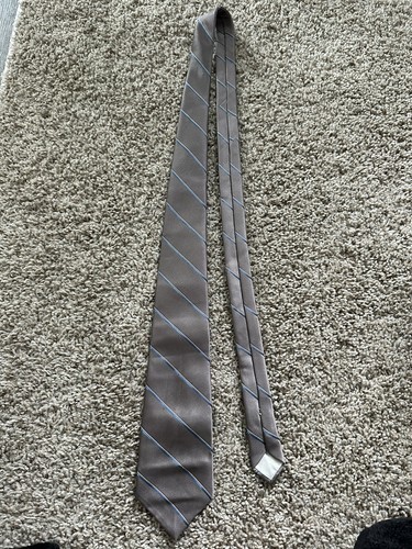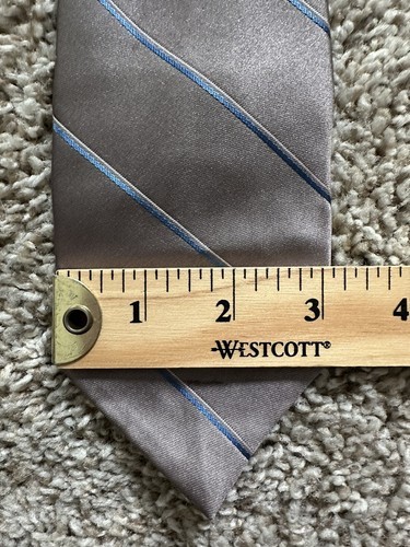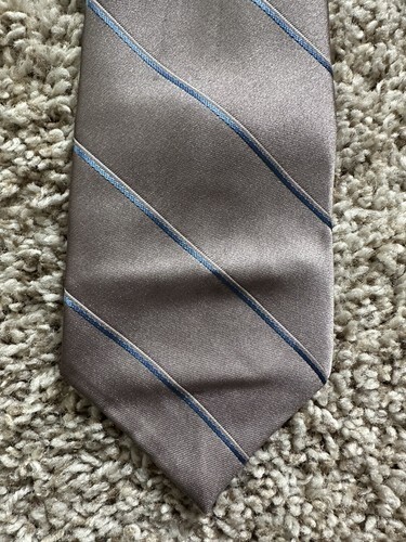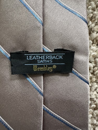 Wembley Original "Leatherback Satins" Men's Neck Tie - Striped, Silver Blue. Condition is Pre-owned. Shipped with USPS Ground Advantage.