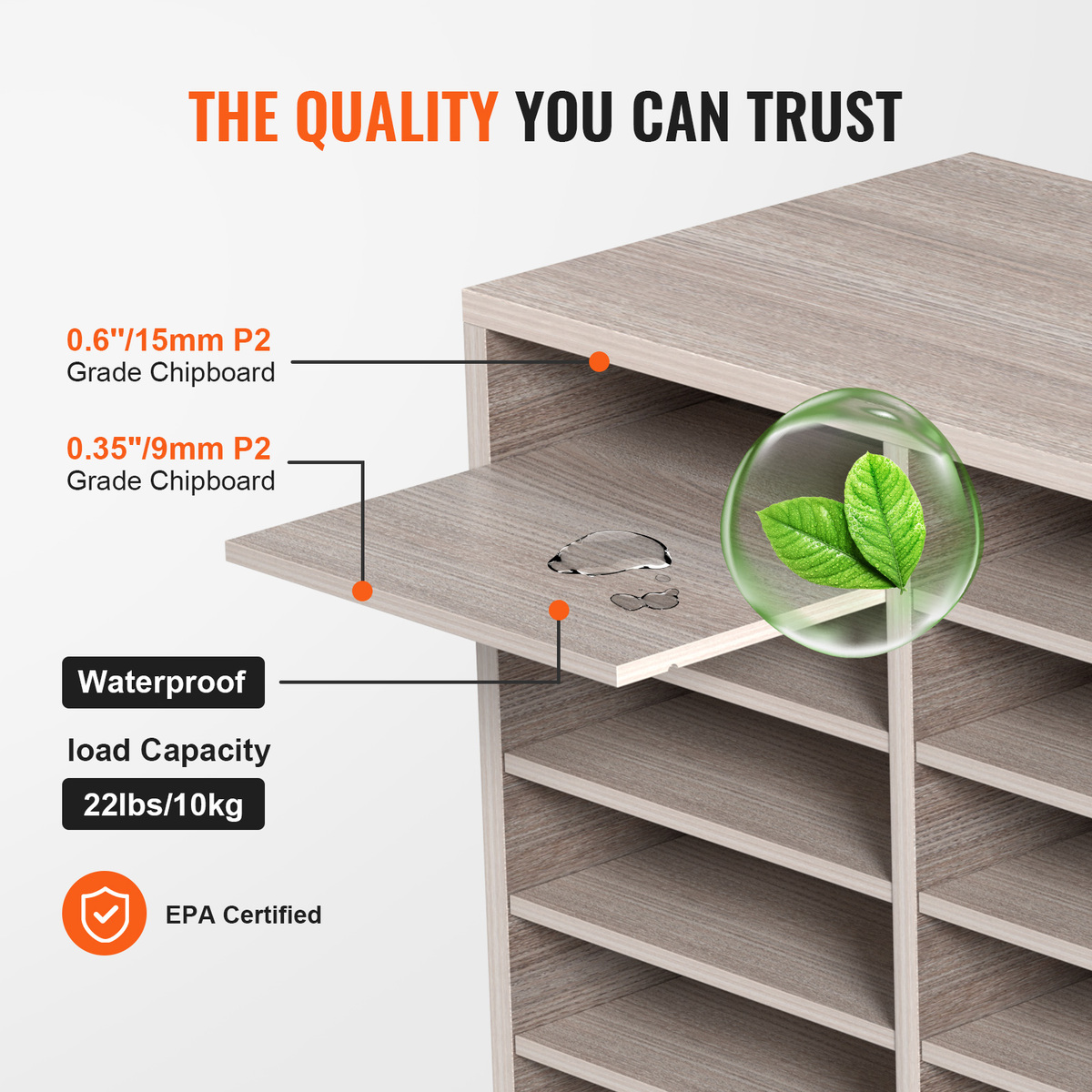VEVOR 27 Compartments Wood Literature Organizer, with Adjustable Shelves, Grey