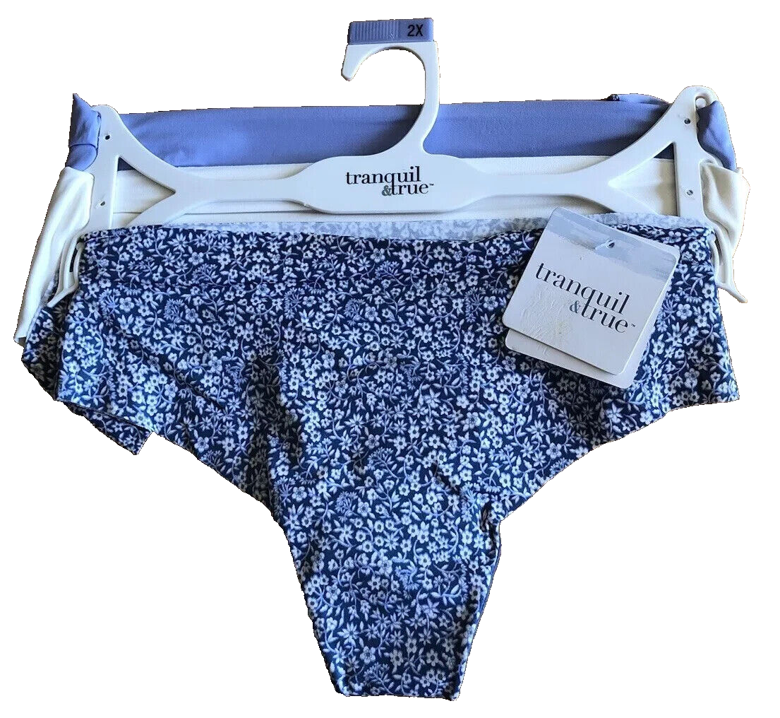 3 Pair Tranquil & True Women's 1X Thong Briefs Panties Underwear Blues Floral