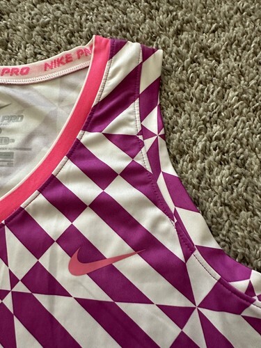 Nike Pro Shirt Womens Small Geometric Fitted Sleeveless Dri-Fit Athletic