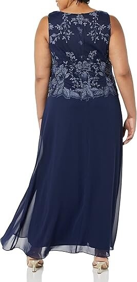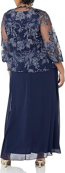 Alex Evenings Plus Size Embroidered Floral Navy Blue 2 piece Dress Size 18W