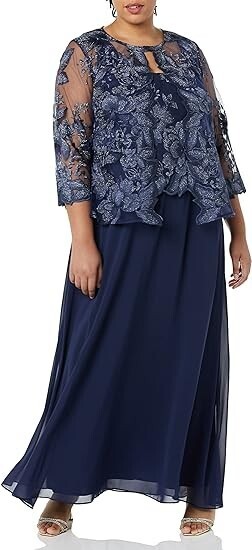 Two Piece Set Includes Coordinating Jacket and Long Dress