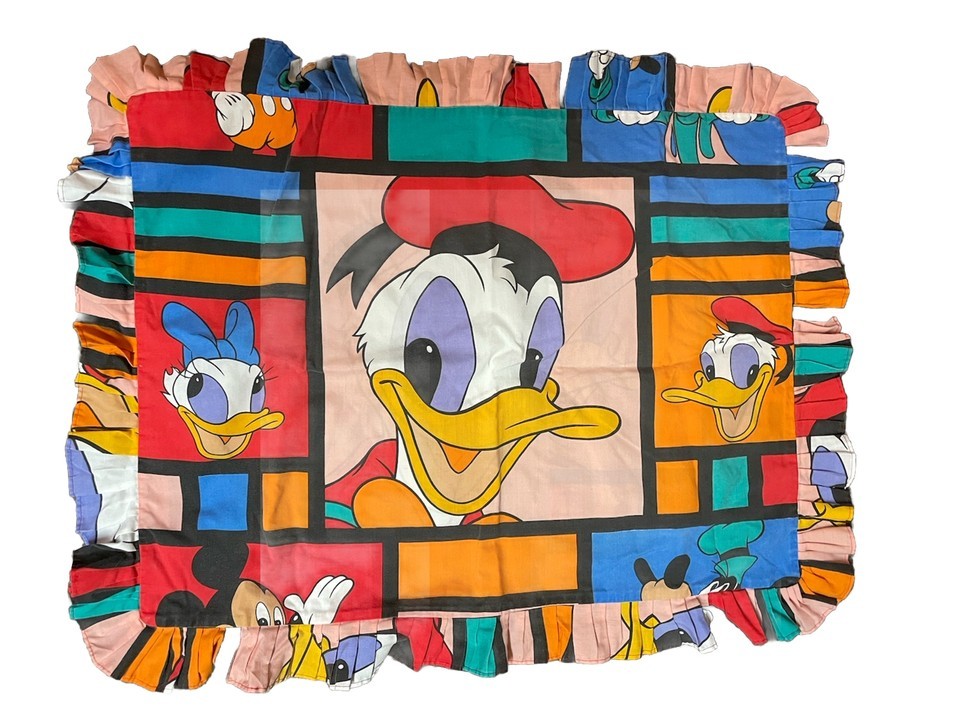 VTG Disney Mickey Mouse Minnie Donald Goofy COLOR BLOCK Twin Pillow Covers