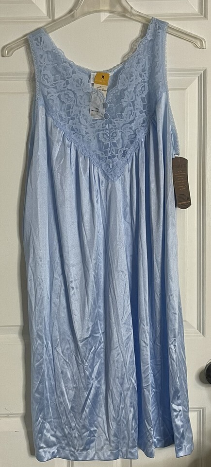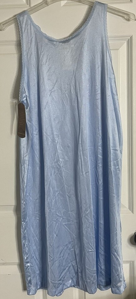 Vintage 80s Sheer Satin Nylon Mid Length Nightgown Soft Nightie Sleeveless Med.