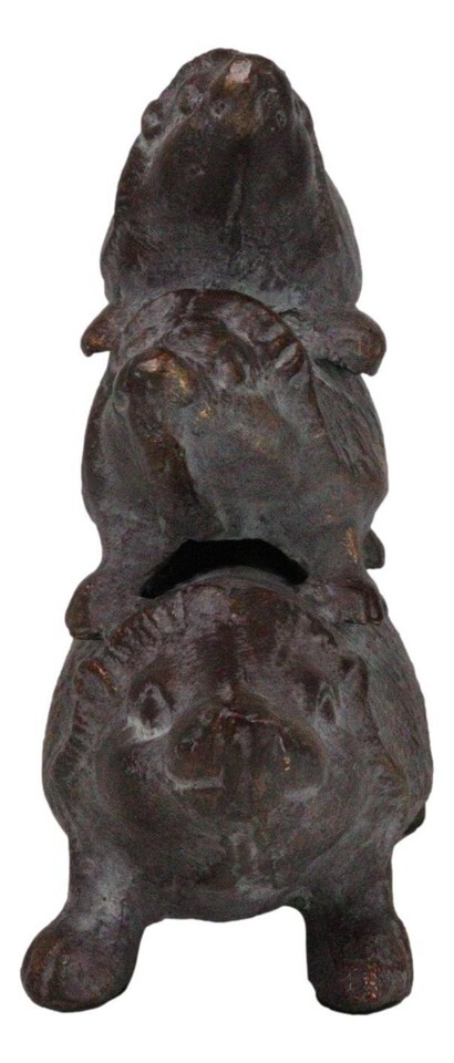 Cast Iron Whimsical Animal Totem Acrobatic Stacked Hedgehog Trio Garden Statue