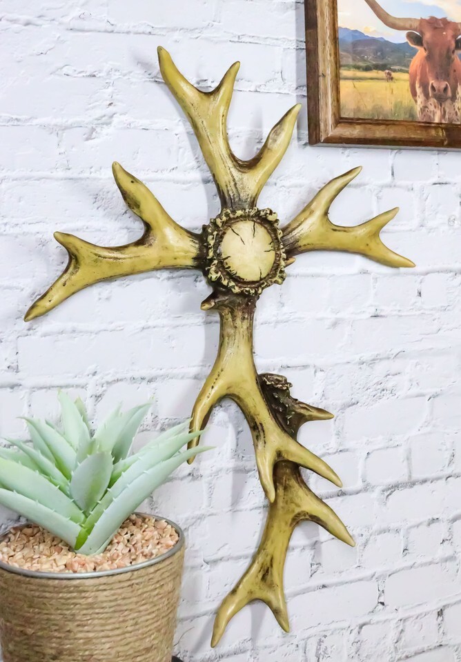 ? This beautiful Deer Antlers wall cross is made of polyresin, painstakingly hand painted and polished individually.