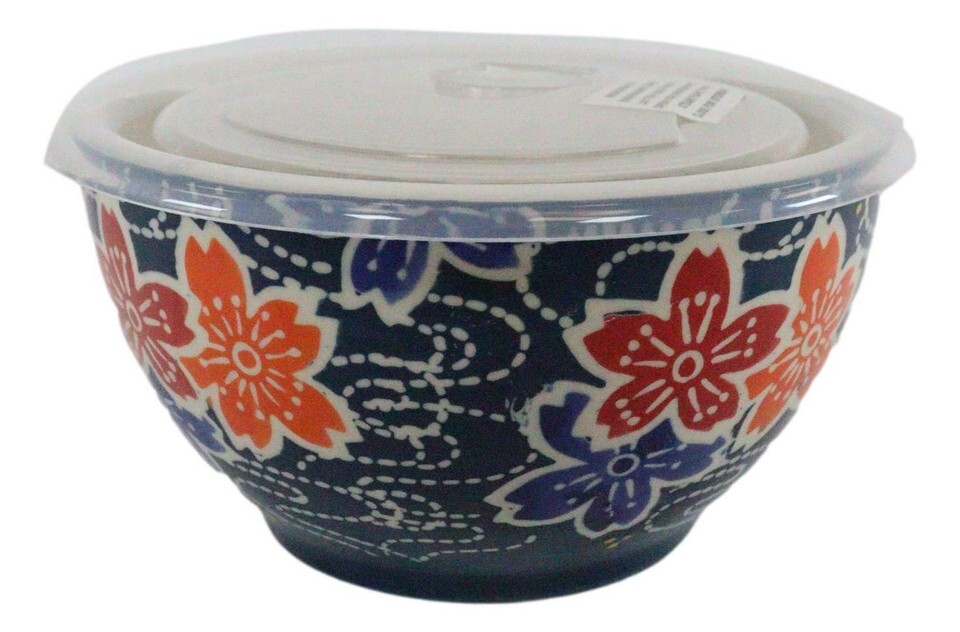Ebros Set of 2 Ceramic Blue Cherry Blossoms Portion Meal Bowls 3 Cups W/ Lid