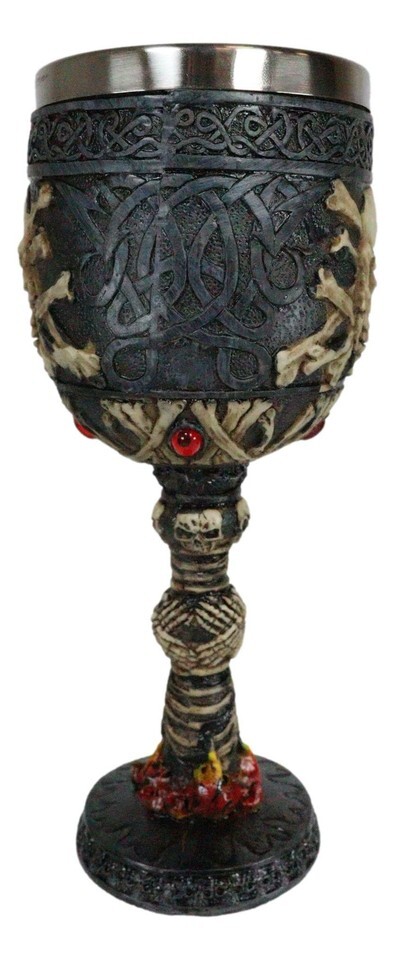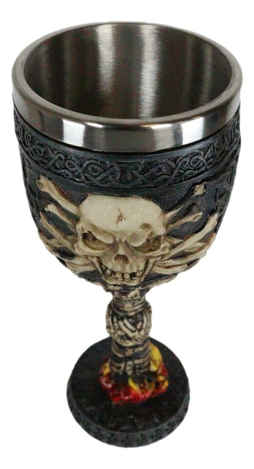 Death Horror Skeleton Bones In Inferno Hell Fire Wine Drink Goblet Chalice Cup