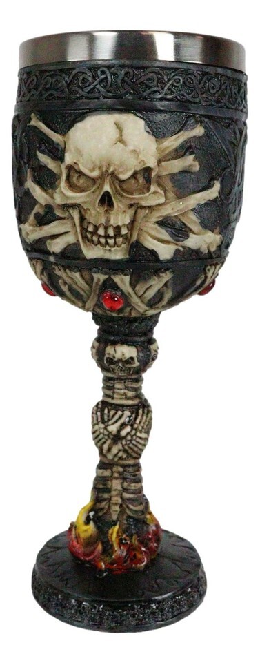 Ebros Death Horror Skeleton Bones In Inferno Hell Fire Wine Drink Goblet Chalice Cup
