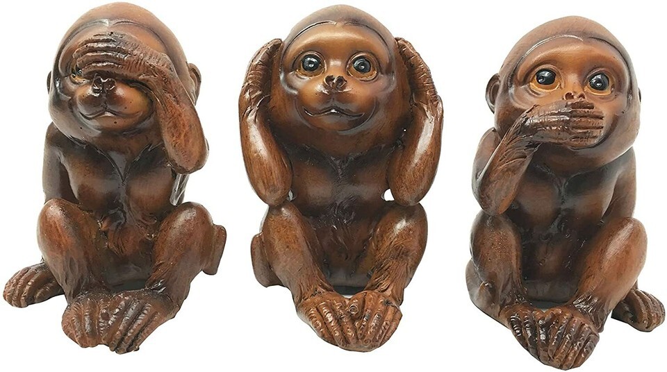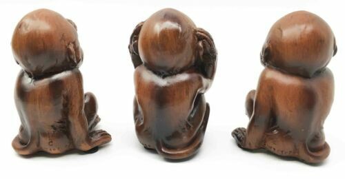 Ebros Faux Wood See Hear Speak No Evil Monkeys Three Wise Ape Figurine Set