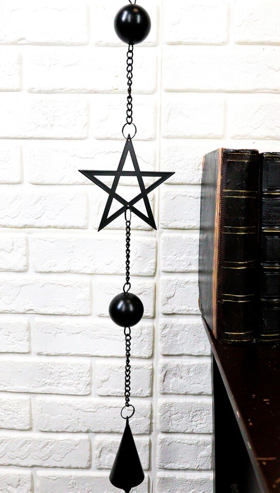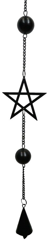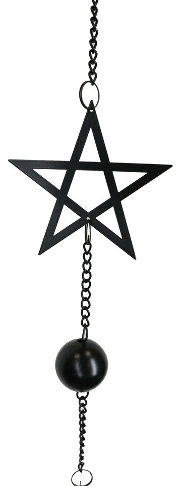Wicca Occult Pentagram Pentacle Stars Black Coated Steel Metal Wind Chime Mobile