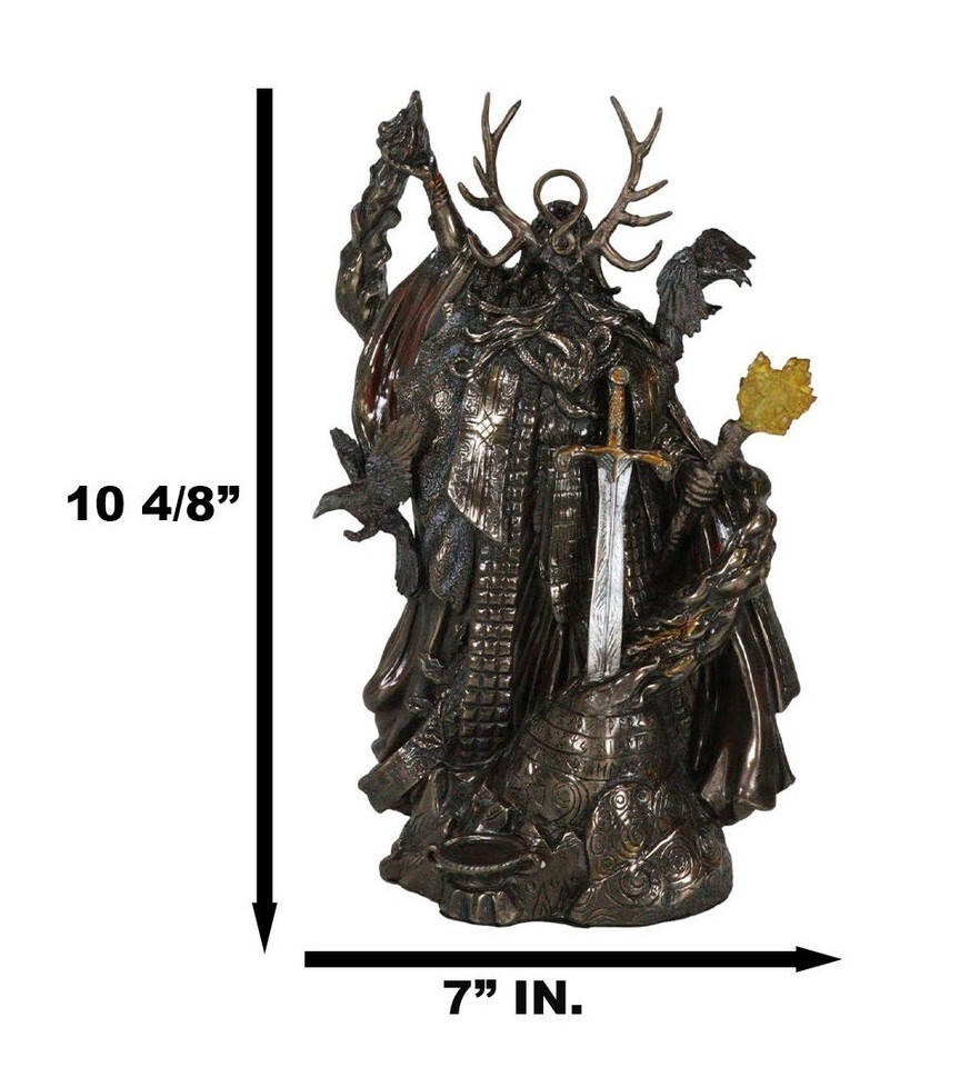 ? This Merlin With Excalibur Sword figurine is made of designer composite resin, hand painted and polished individually. Color tone may vary from pictures.
