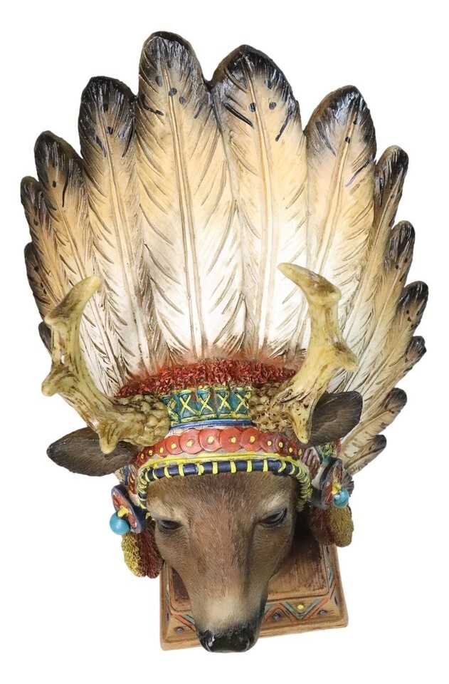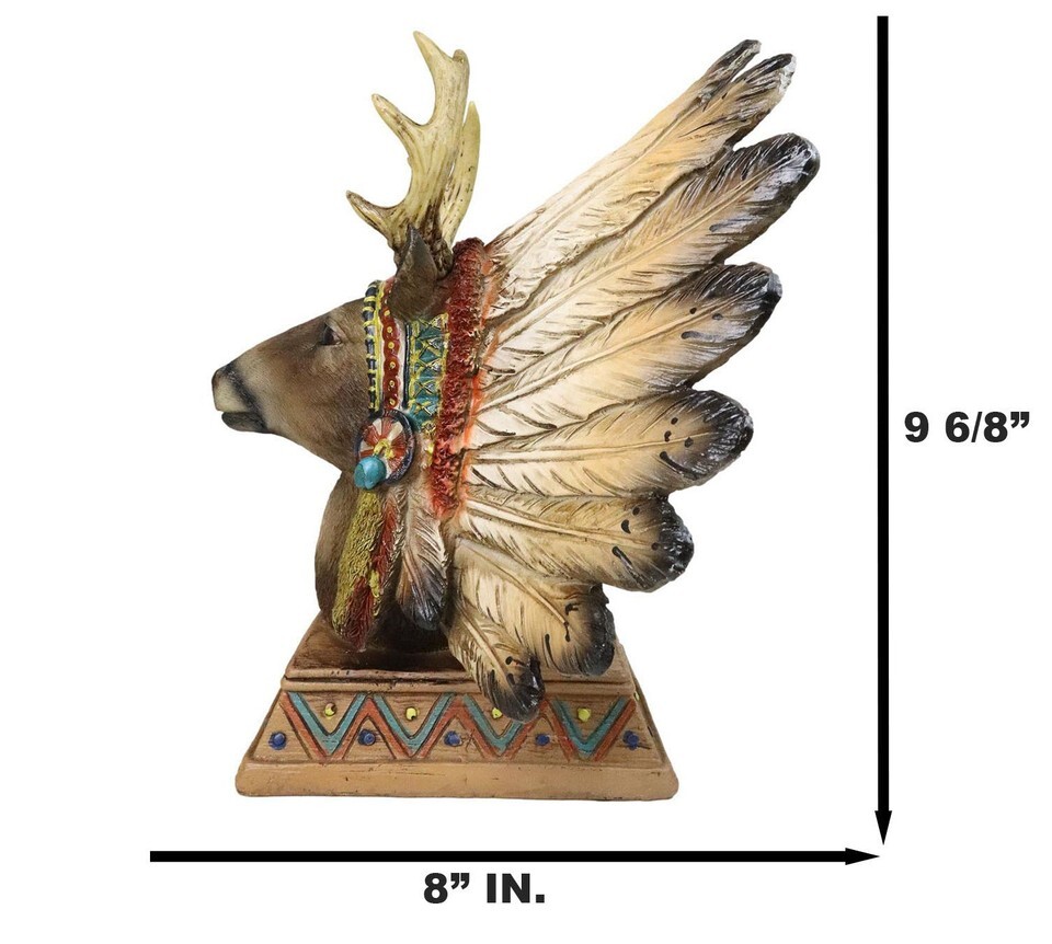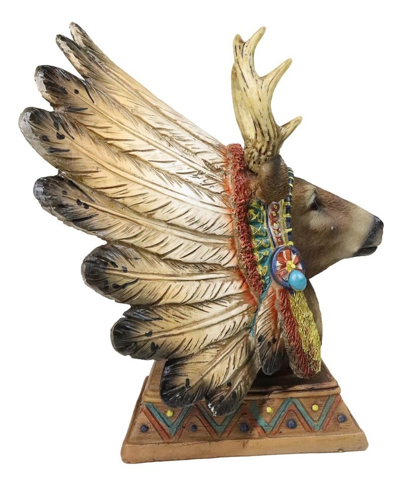 Native American Indian Stag Deer Chief With Roach Headdress Figurine