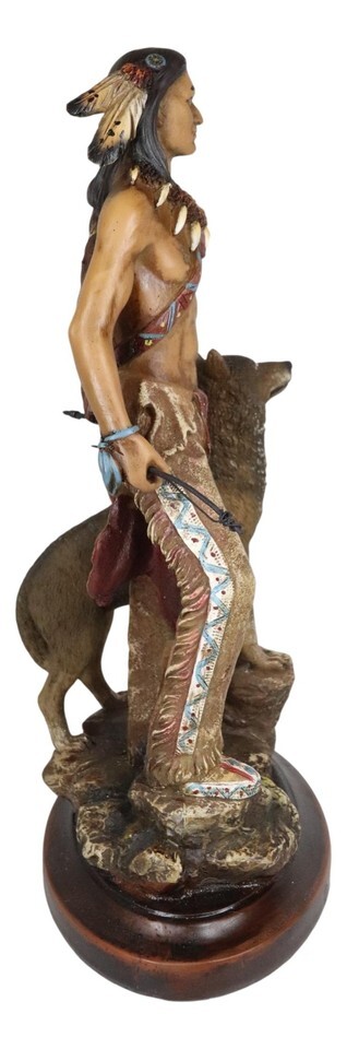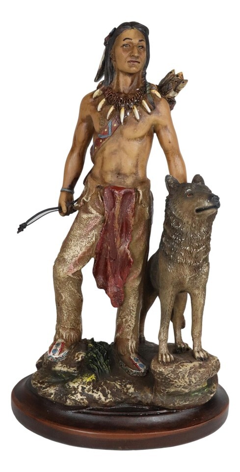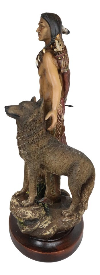 ? This Indian Warrior Chief With Wolf Figurine is made of polyresin, hand painted and polished individually. Color Tone May Vary slightly from pictures.