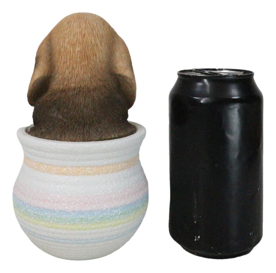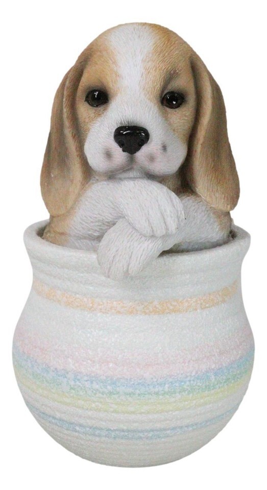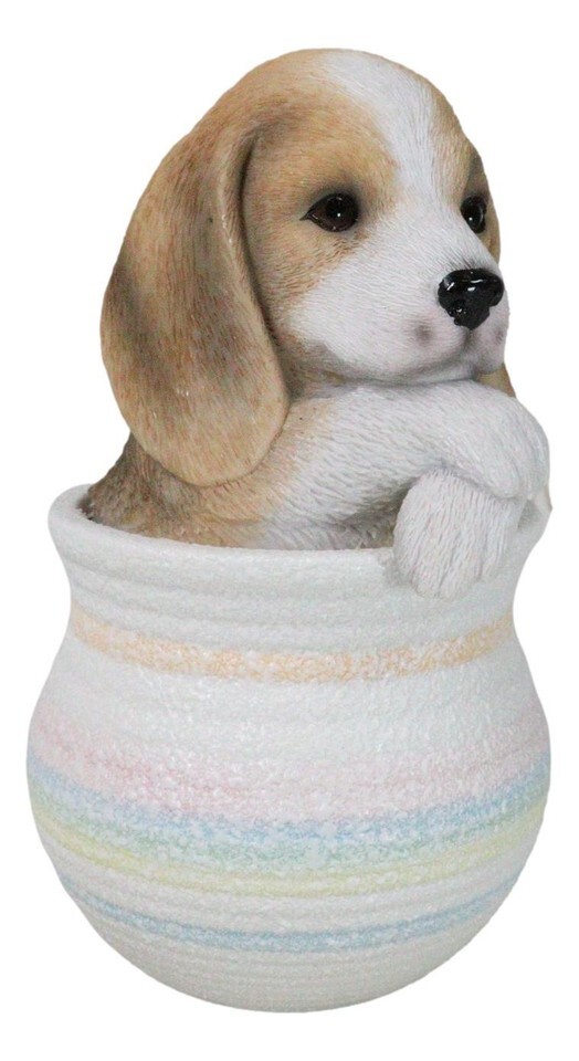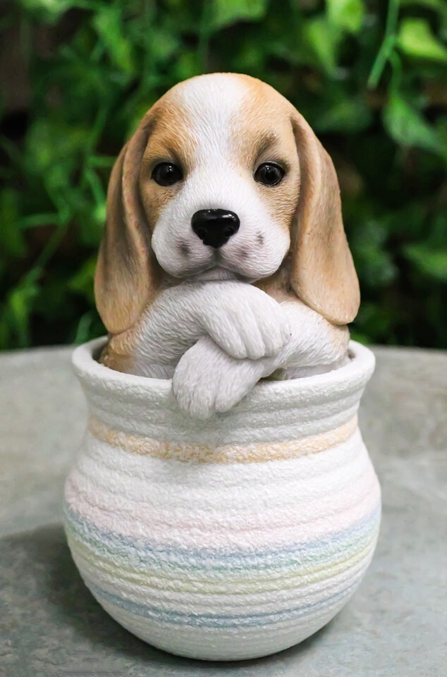 Realistic Tri Color Beagle Puppy Dog Figurine With Glass Eyes Pup In Pot