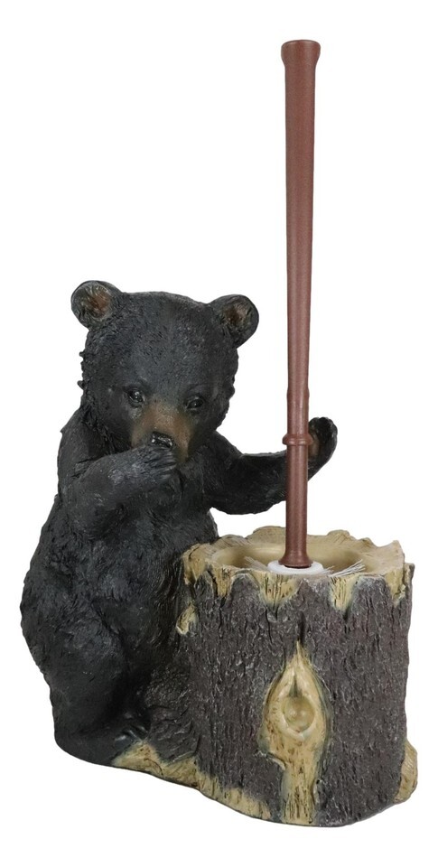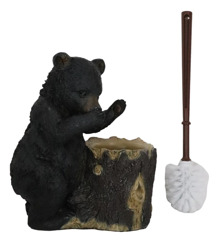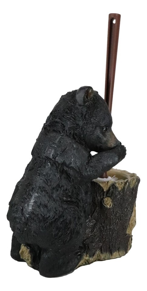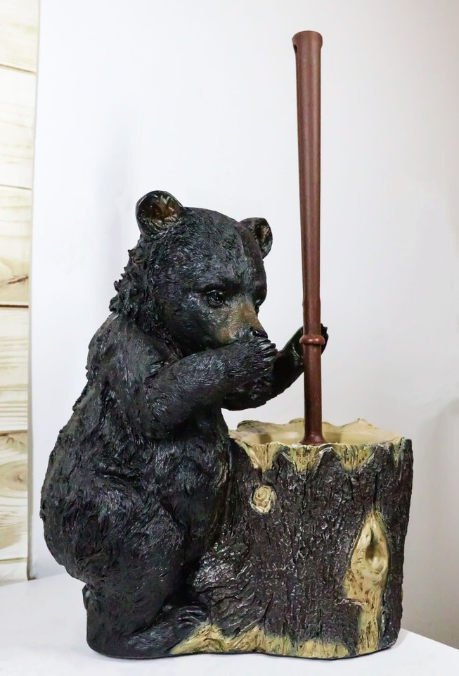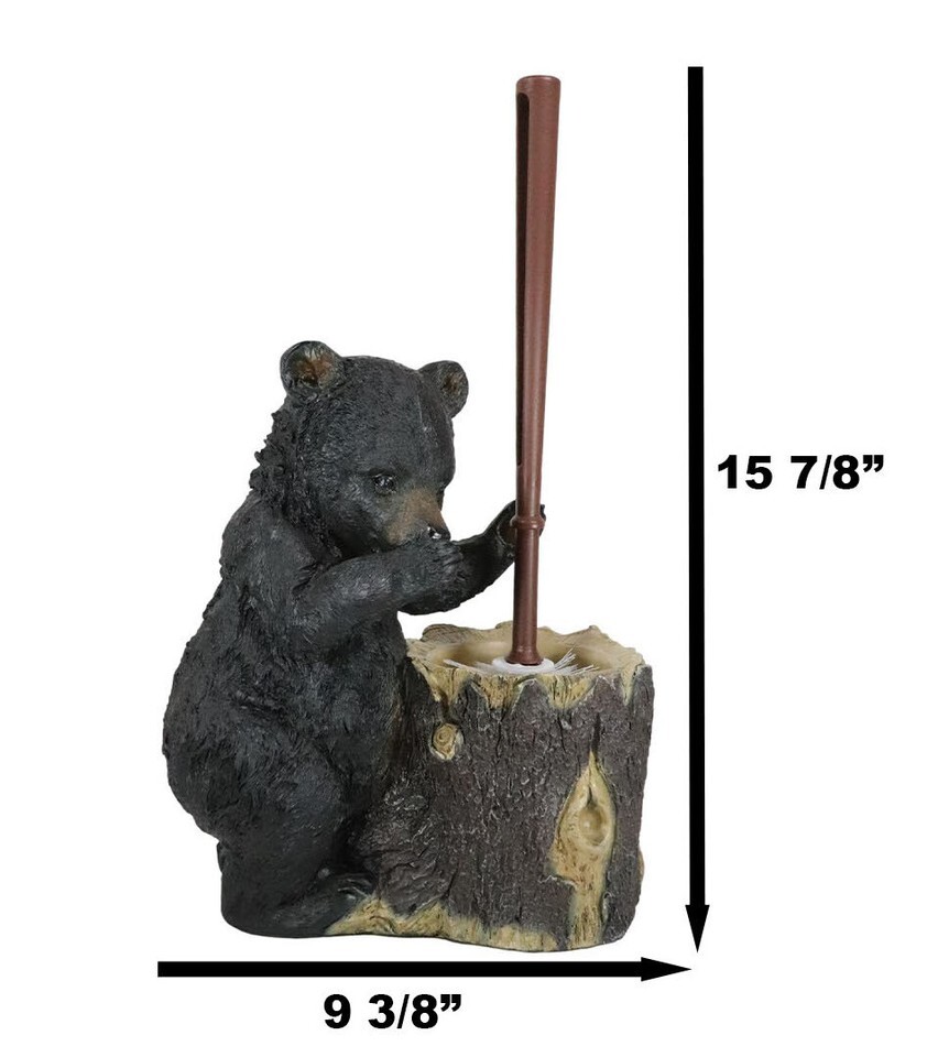Ebros Rustic Whimsical Black Bear Stinky Potion Toilet Brush And Holder Set