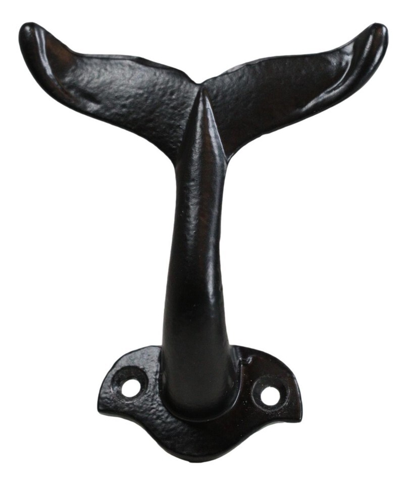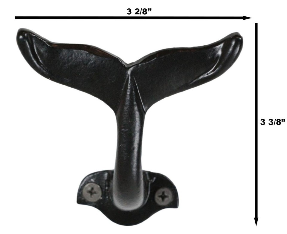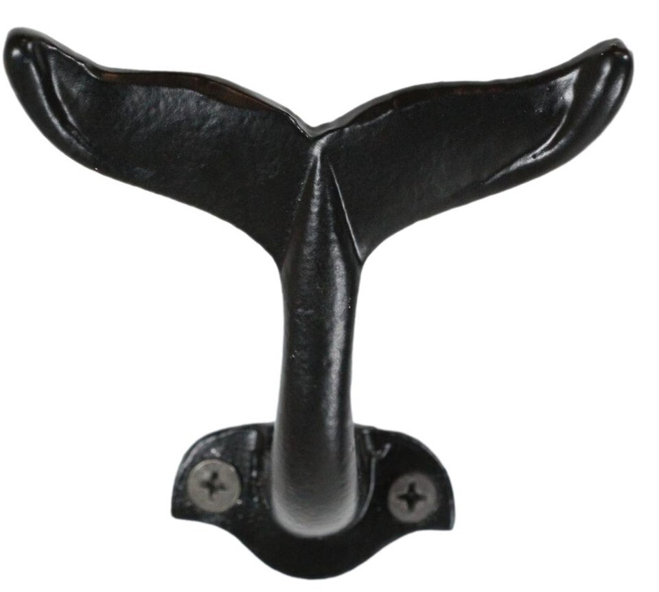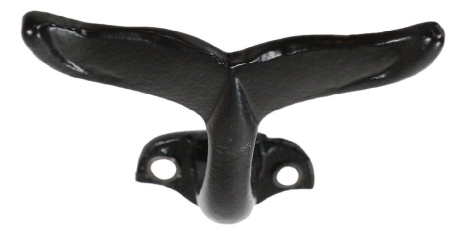 Pack Of 2 Black Cast Iron Nautical Baleen Blue Whale Tail Wall Coat Hook Hangers