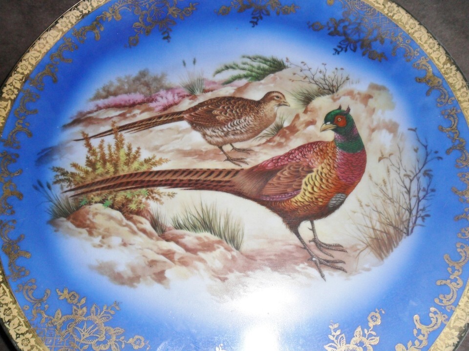 STW Bavaria blue and gold Game Bird Plate Bareuther Waldsassen 12", very good condition, some light surface scratches commensurate with age
