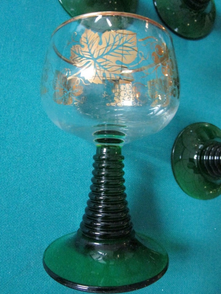Luminarc German Roemer "Lemberg / Pflaz" Green gold crystal wine glass PICK SET