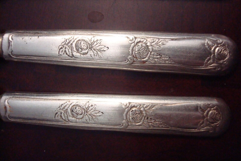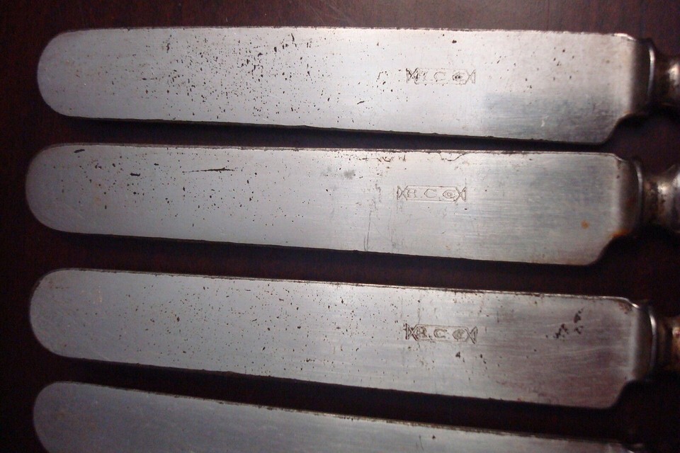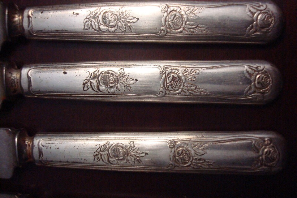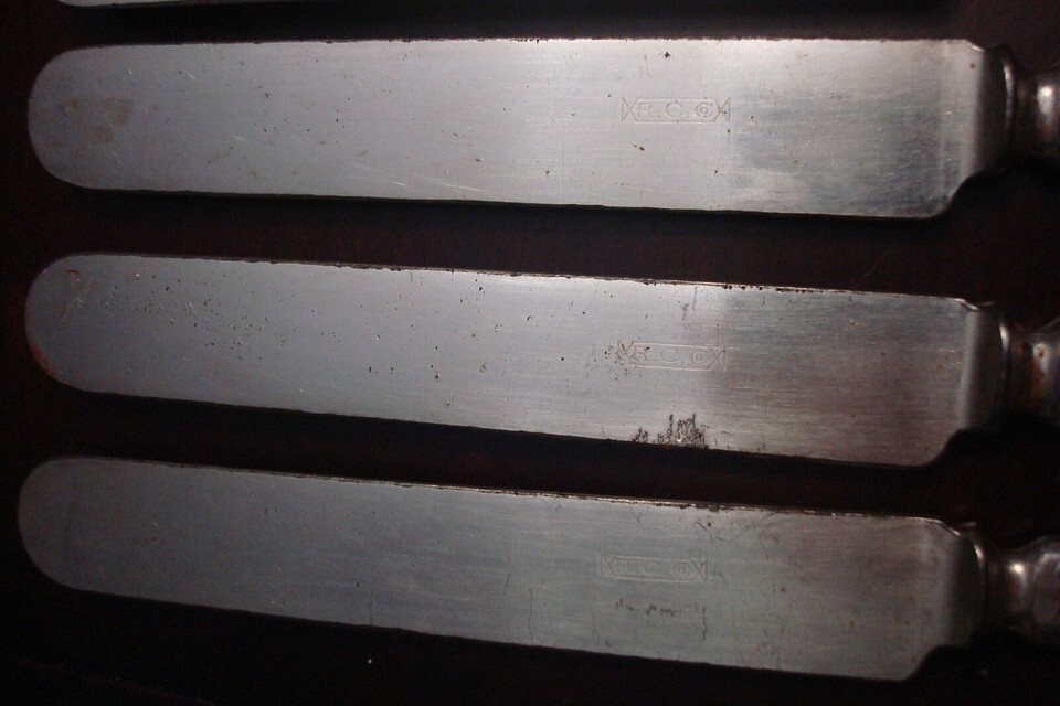 Rogers Cutler Company ( R C co) International Silver, Bouquet/Vendome 1924 Pattern c1920s 6 knives, very good condition, some surface scratches and patina loss commensurate with age 9 1/4"