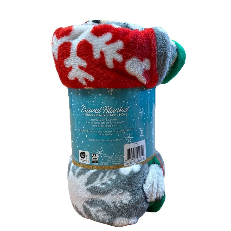 New Disney Mickey Mouse Santa Snowflake Fleece Travel Throw Blanket 45x55”