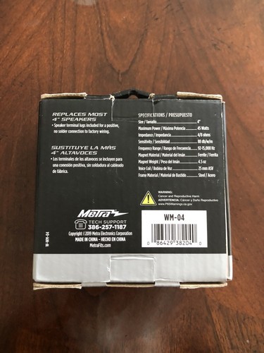 Metra 4" Speaker Dual Cone Factory Replacement Black WM-40 45 Watts Universal.