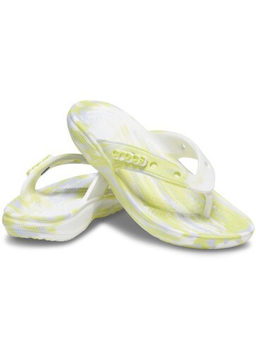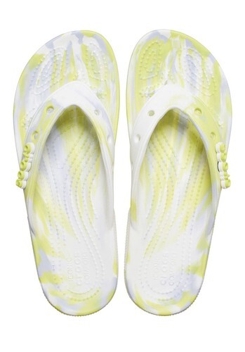 Unisex Sandals Crocs Classic Flip-Flop Marble Yellow Gray White Size 15.