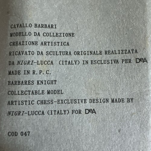 Handmade Italian Nigri Scacchi Chess Roman Replacement Piece Barbares Knight