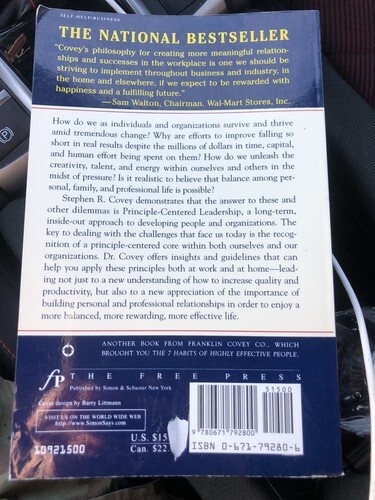 Principle-Centered Leadership - paperback, 0671792806, Stephen R Covey.