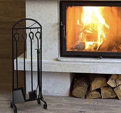 Wood stove fire pit tools accessories comes with a poker, brush, shovel, tongs and stand with pedestal base. The wrought iron fireplace tools are arranged around a central pole that does not take up too much guest room space. 5pc fireplace tool set attractively keeps your tools in one convenient area.
