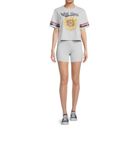 No Boundaries JRS Wild Heart Graphic T-Shirt and Shorts Set size XL (15/17) Grey